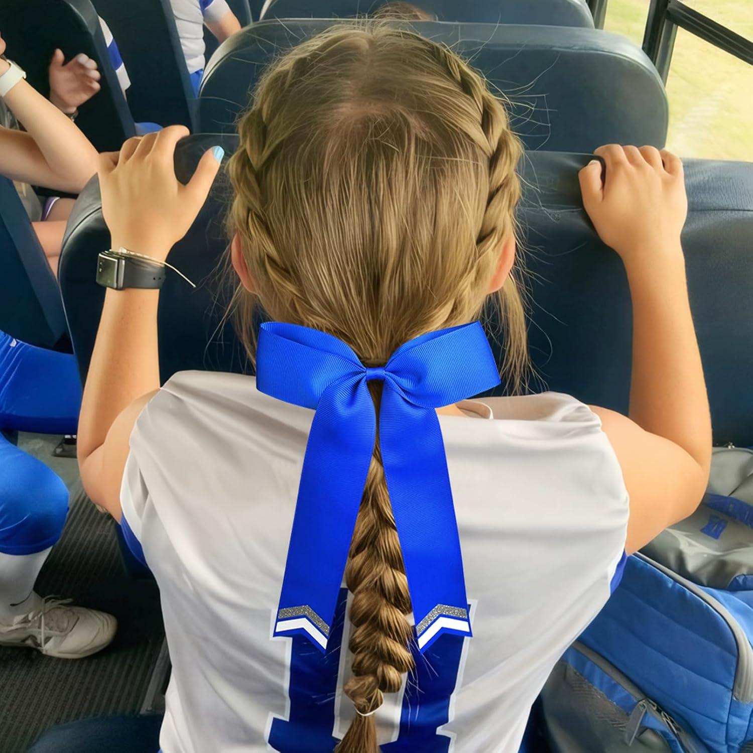 100% Hand- made cheer bows for teen girls softball cheerleader sports,These cheer bows are perfect for outfitting the whole team! These cheer style bows have ribbon tails and attach to ponytails with hair ties