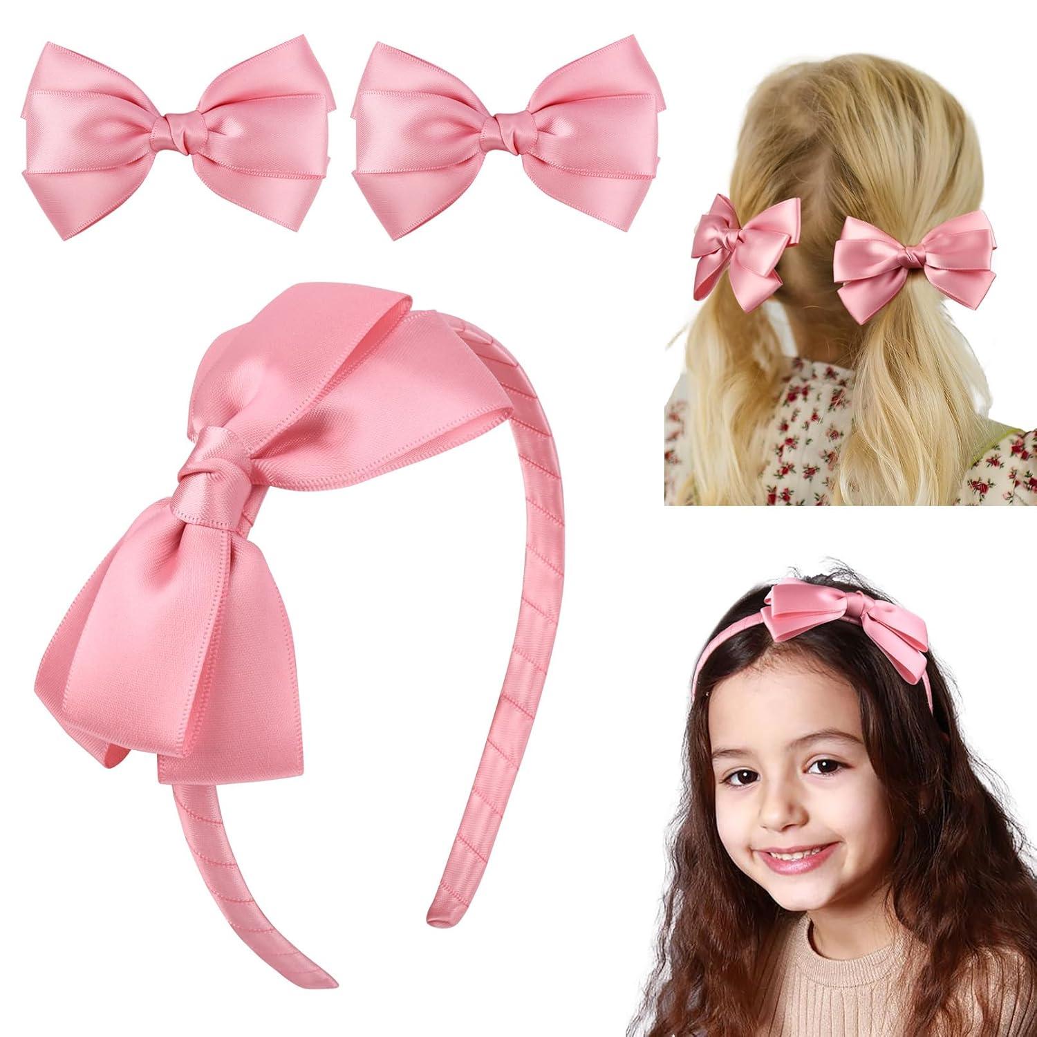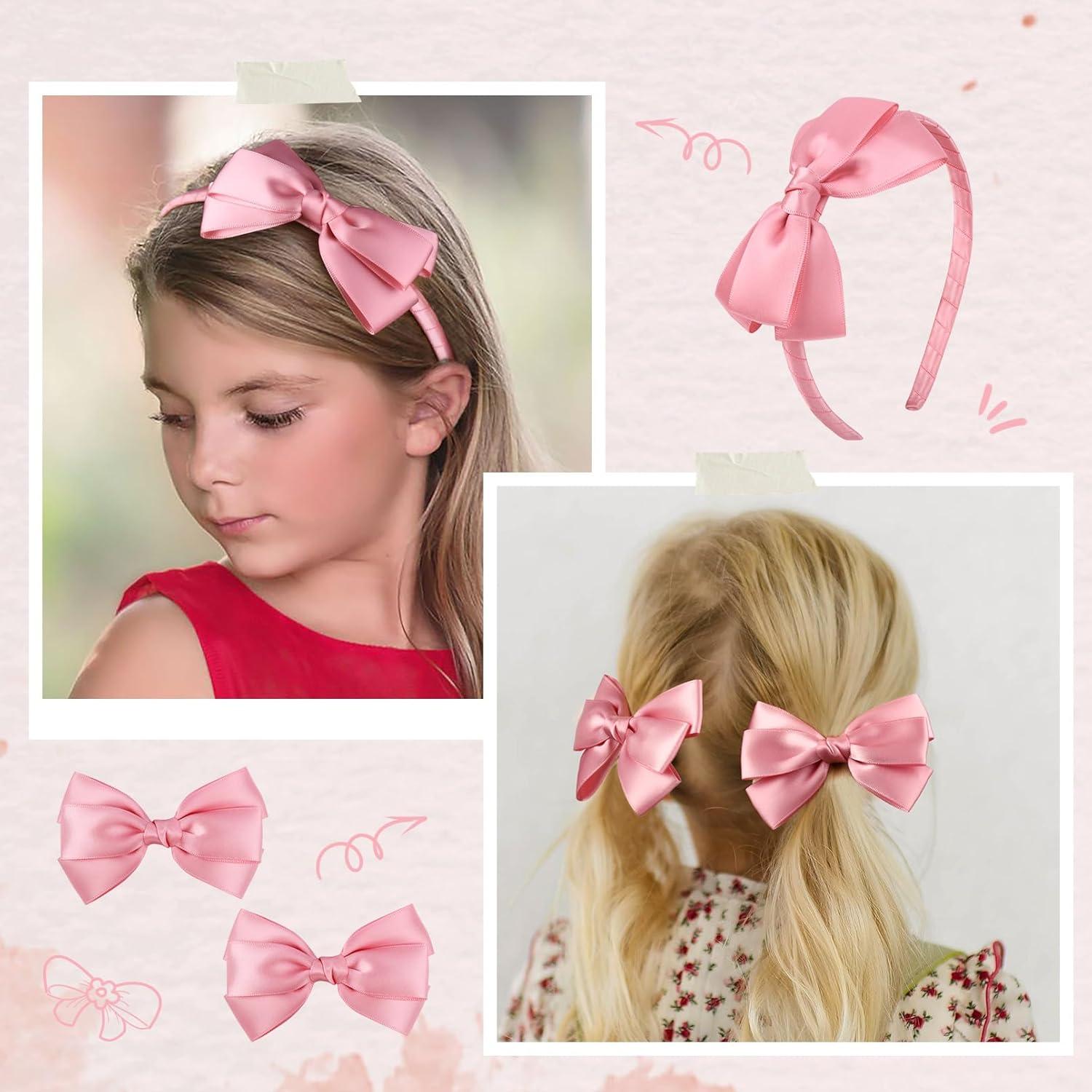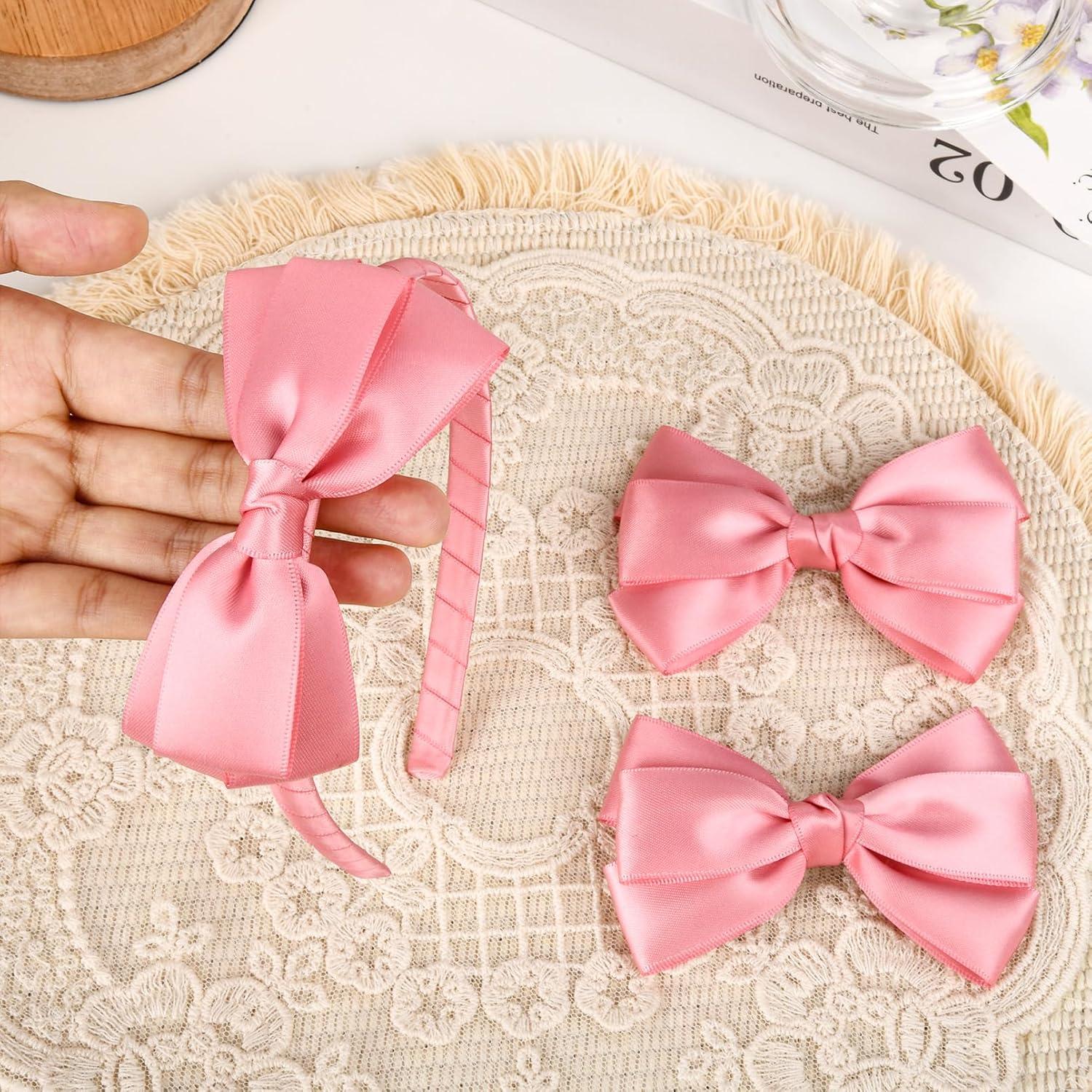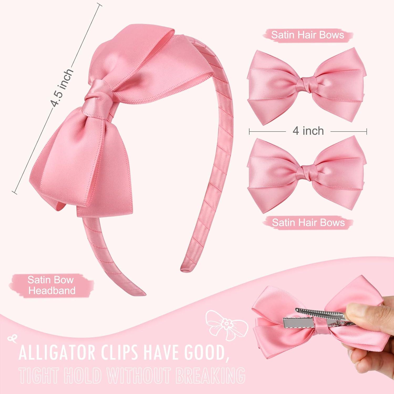 The set contains 1 satin bow headband and 2 satin bow hair clips. You can use them to match various outfits, giving you the opportunity to enjoy 2 different wearing experiences from just one purchase.