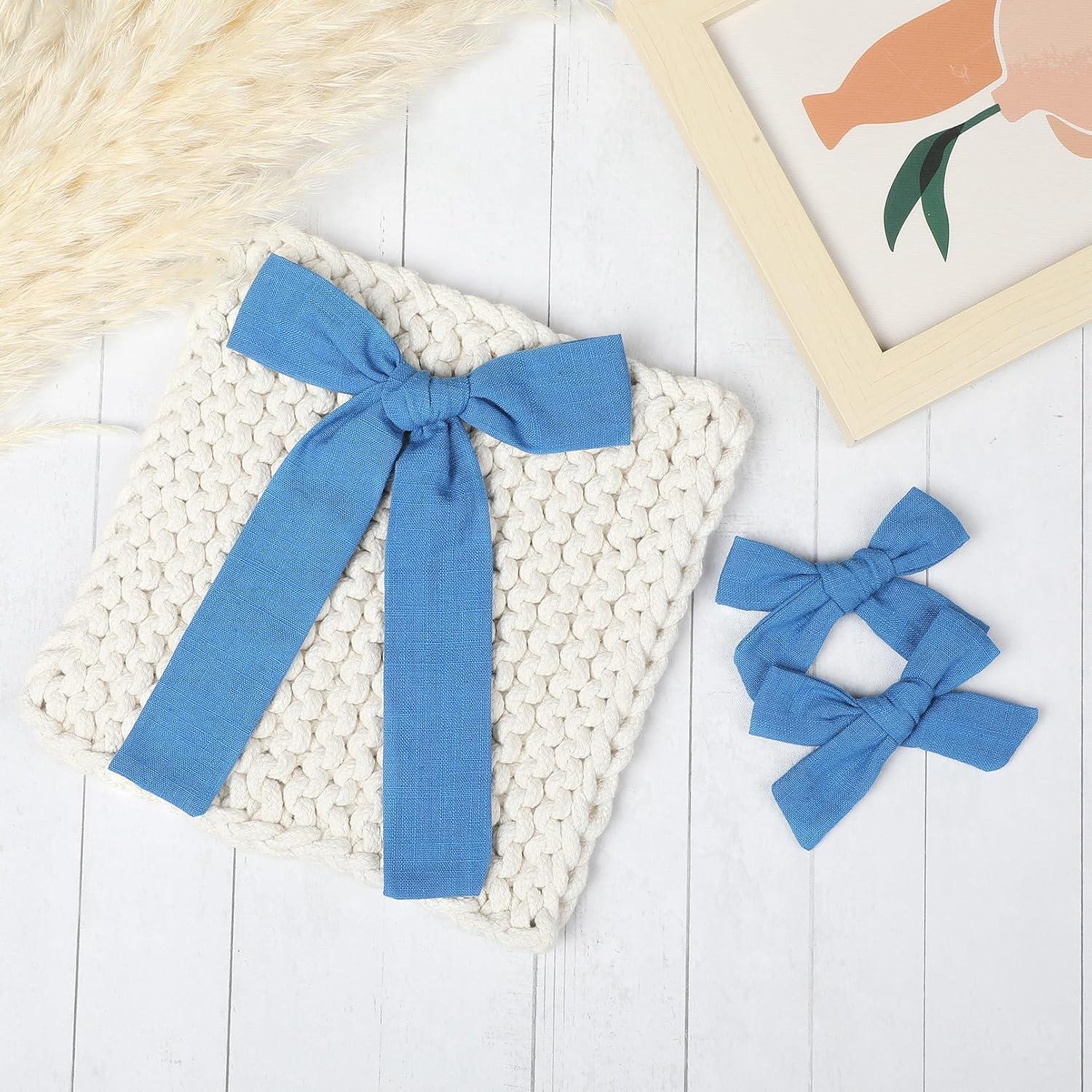 DEEKA Blue Cotton Linen Hair Bows 2 Sizes 5″&3.5″ Soft Hair Bow set for Toddler Girls Long Ponytail Knot Bows Alligator Clip Hair Accessories for Little School Girls (Blue)(Burgundy)