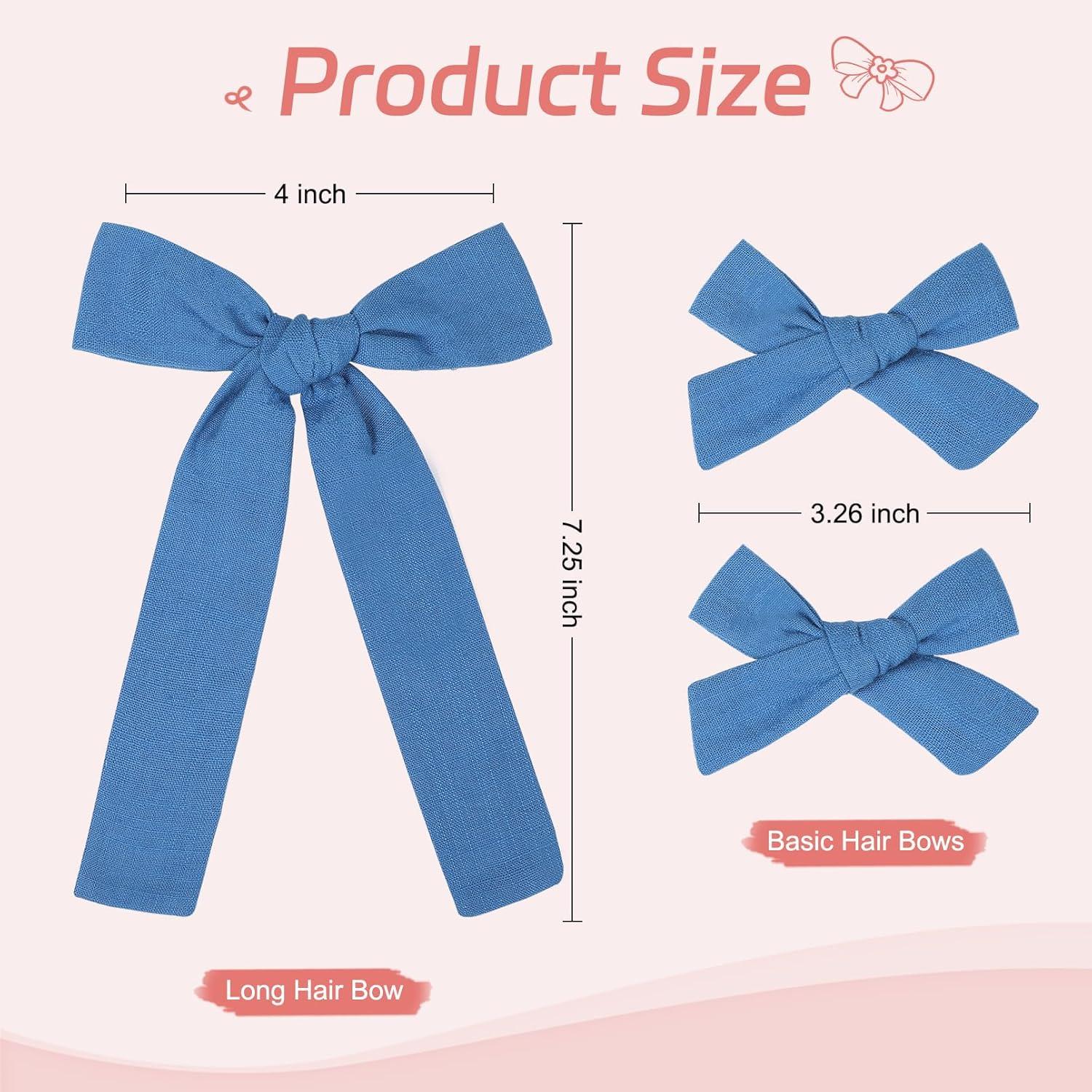 DEEKA Blue Cotton Linen Hair Bows 2 Sizes 5"&3.5" Soft Hair Bow set for Toddler Girls Long Ponytail Knot Bows Alligator Clip Hair Accessories for Little School Girls (Blue)(Classic Blue)