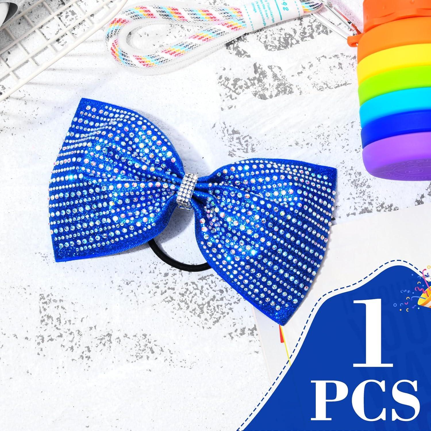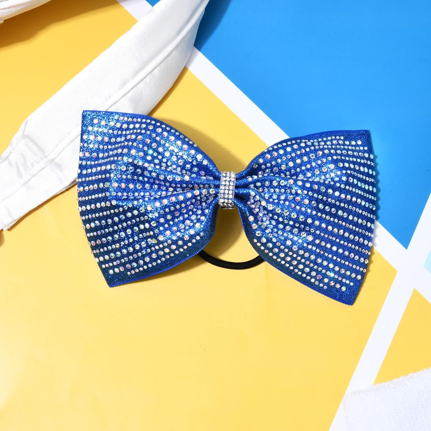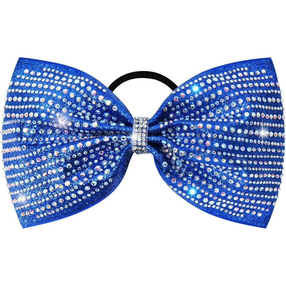 DEEKA Glitter Tailless Cheer Bows Rhinestones Competition Hair Bow Elastic Band for Cheerleading Cheerleaders Girls(Glitter Royal Blue7 Inch))