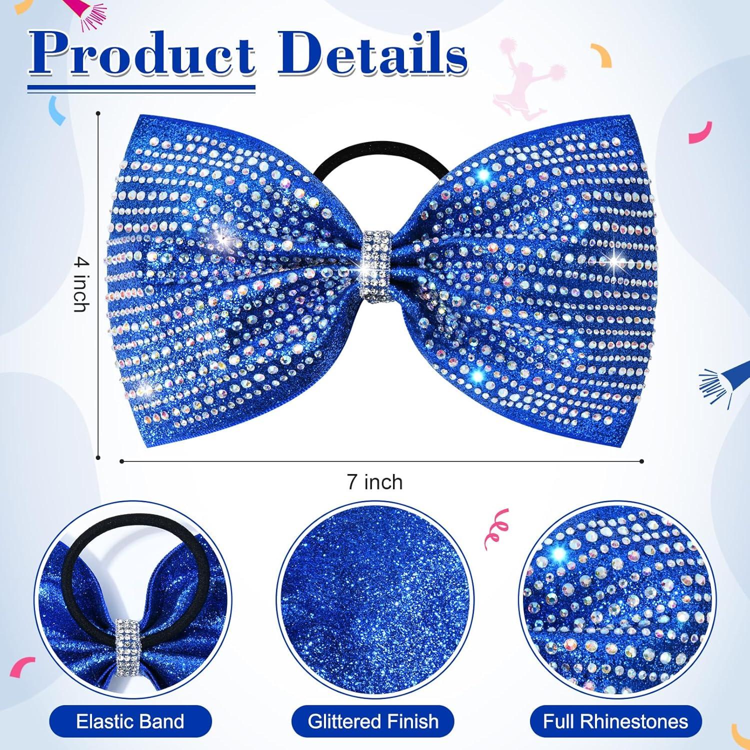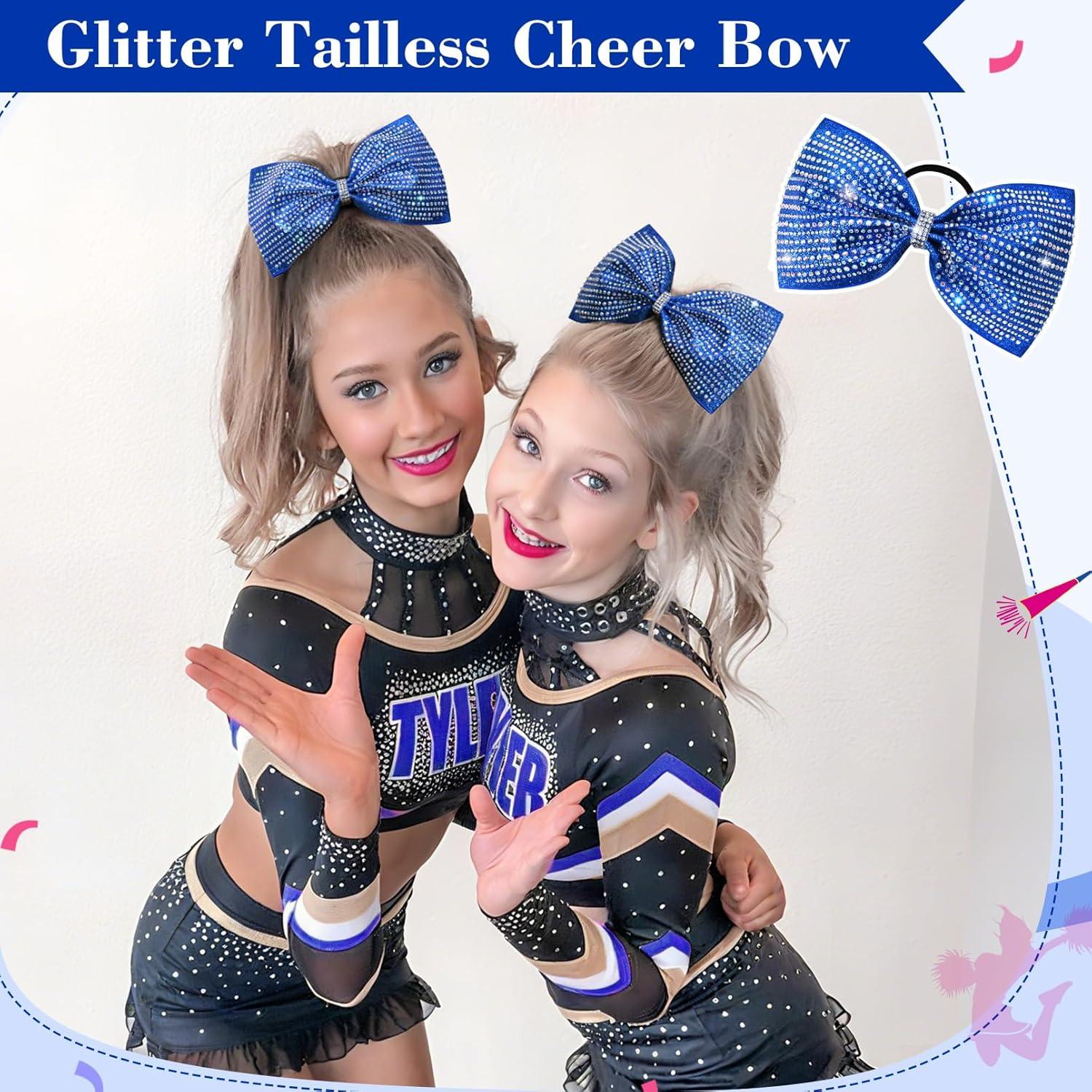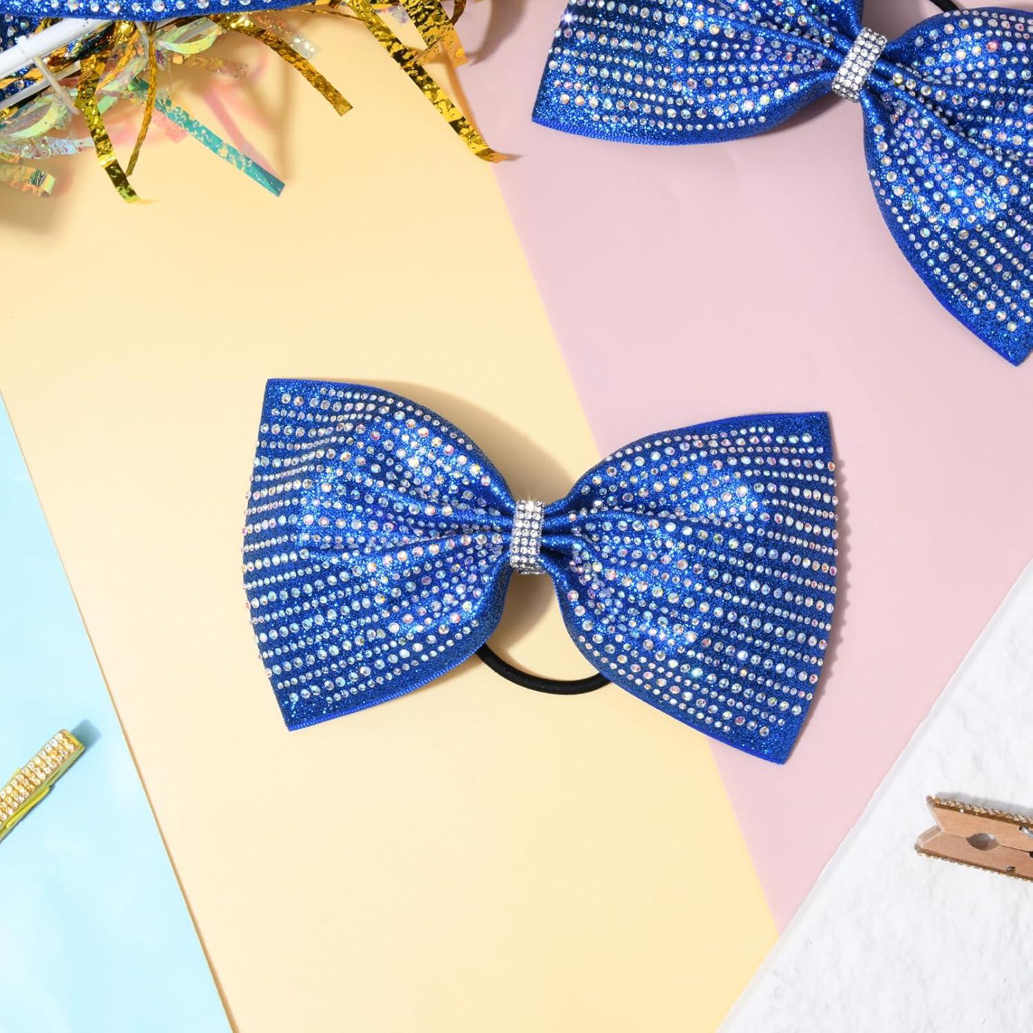DEEKA Glitter Tailless Cheer Bows Rhinestones Competition Hair Bow Elastic Band for Cheerleading Cheerleaders Girls(Glitter Royal Blue7 Inch))